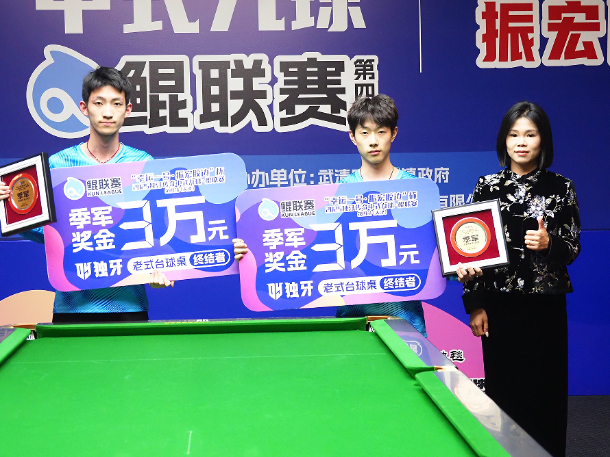 11月 26 日“幸运一号·振宏胶边”杯 2025 独牙传奇中式九球·鲲联赛第四站(天津站)圆满落幕。历经11天的激烈角逐,陈成汉在众多参赛选手中脱颖而出,并在决赛中展现超强实力,成功问鼎本站鲲联赛小球王,斩获10万元奖金及冠军奖杯;何世威获得亚军,获奖金5万元;周坤与呼冠达并列季军,各获奖金3万元;陈成汉凭借29金斩获搏金王,获2000元奖金。