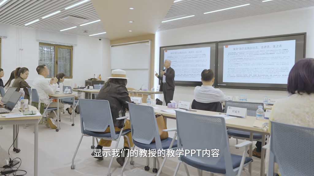 在UBI的大型培训教室,两块Newline大屏并立而设,直观呼应商学教学“理论框架”与“案例推演”并重的需求。